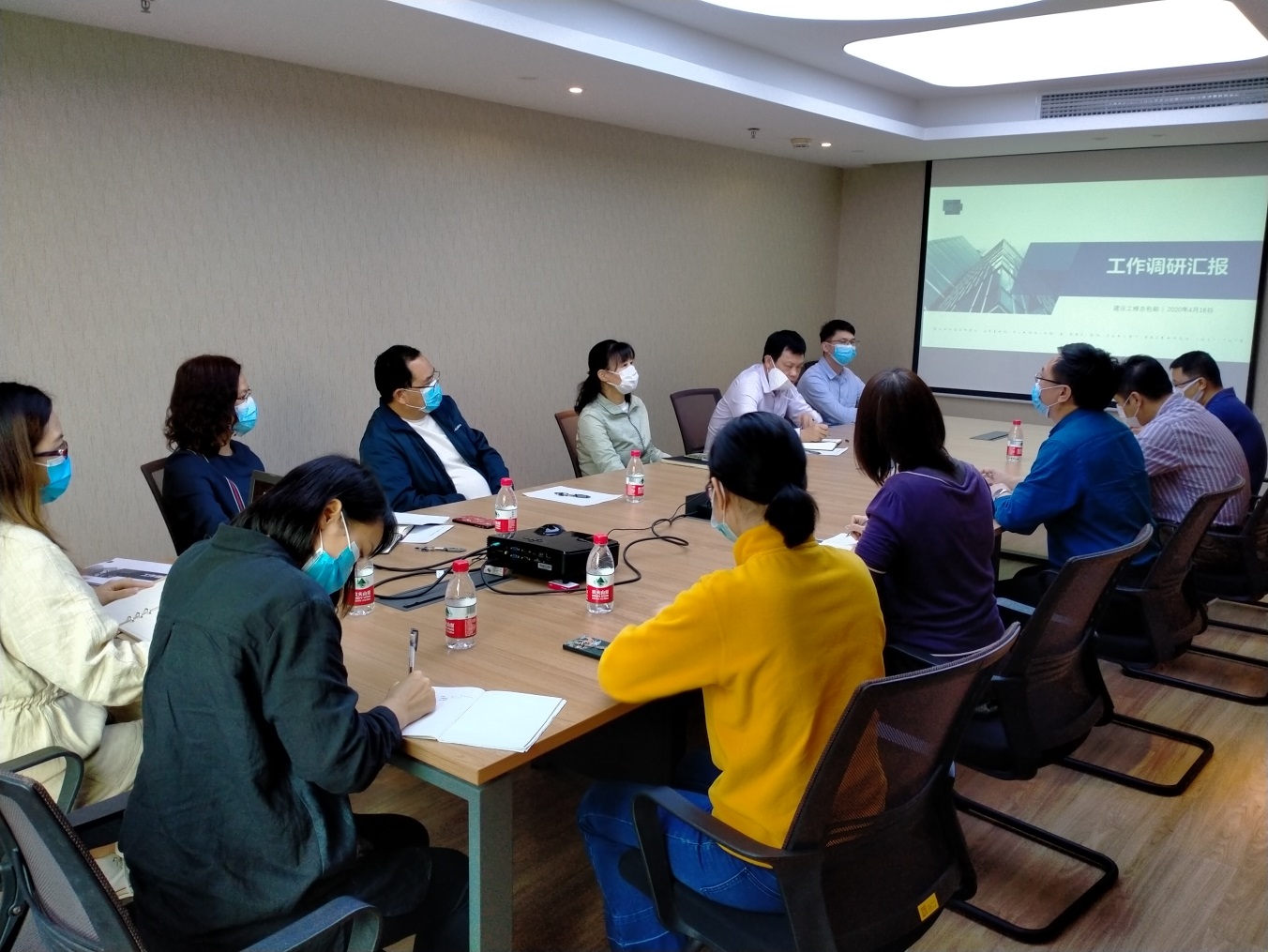 2020年4月16日,規(guī)劃院黨委書(shū)記陳蓉帶隊(duì)到公司開(kāi)展疫情防控和復(fù)工復(fù)產(chǎn)工作調(diào)研,規(guī)劃院黨委委員黎樹(shù)禧及項(xiàng)目部相關(guān)人員參加會(huì)議。