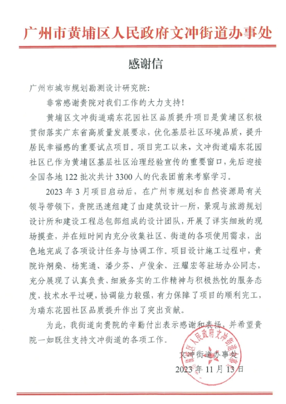 近期,公司陸續(xù)收到多個項目業(yè)主和配合單位發(fā)來的感謝信,黃埔區(qū)文沖街道辦-瑞東花園社區(qū)品質(zhì)提升項目、十六中學(xué)-校本部飯?zhí)酶脑祉椖俊⒒ǘ汲噗桄?zhèn)政府-美麗圩鎮(zhèn)全過程咨詢項目、廣州市公安局打私隊-廣園中路805號大院室...