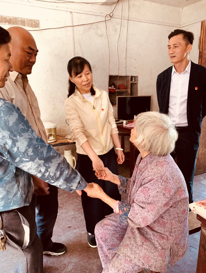 老人拉著前來(lái)探望她的陳蓉書(shū)記的手,想要送大家一些她養(yǎng)的土雞蛋
