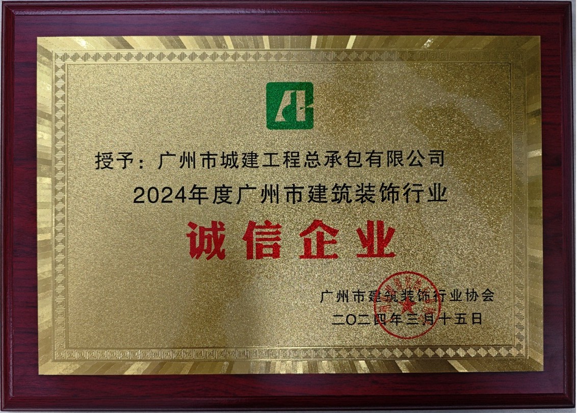 近日,廣州市建筑裝飾行業(yè)協(xié)會舉辦第二屆“誠信企業(yè)”評選活動(dòng),對企業(yè)依法納稅、合同履約、安全生產(chǎn)、社會誠信等管理工作進(jìn)行考察評定。公司積極申報(bào),經(jīng)評審委員會評定、向社會公示等程序,成功復(fù)評為“2024年度廣州市建筑裝飾行業(yè)誠信企業(yè)”,成為第二屆129家達(dá)標(biāo)企業(yè)之一。
